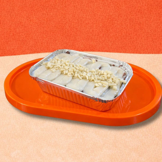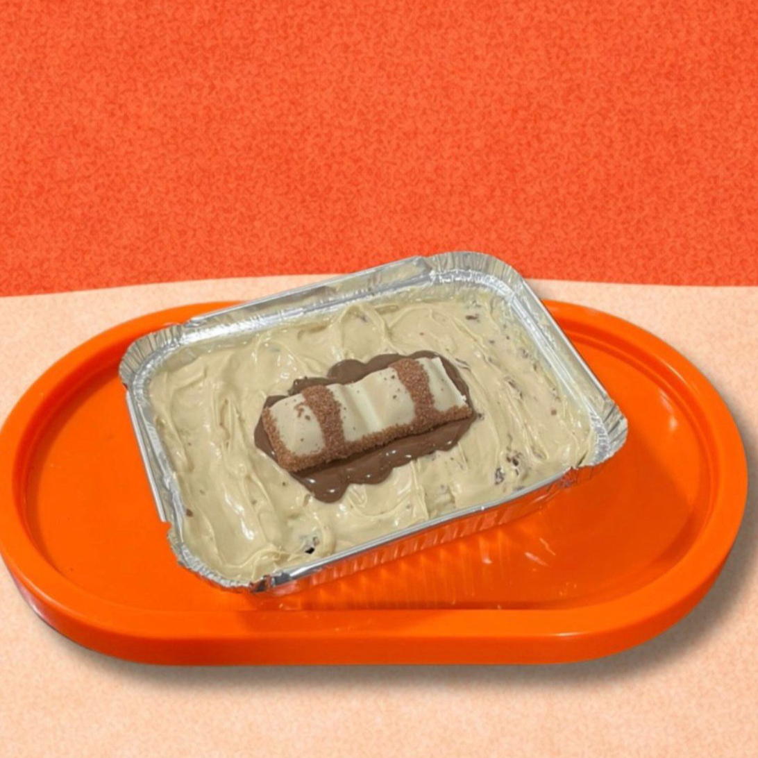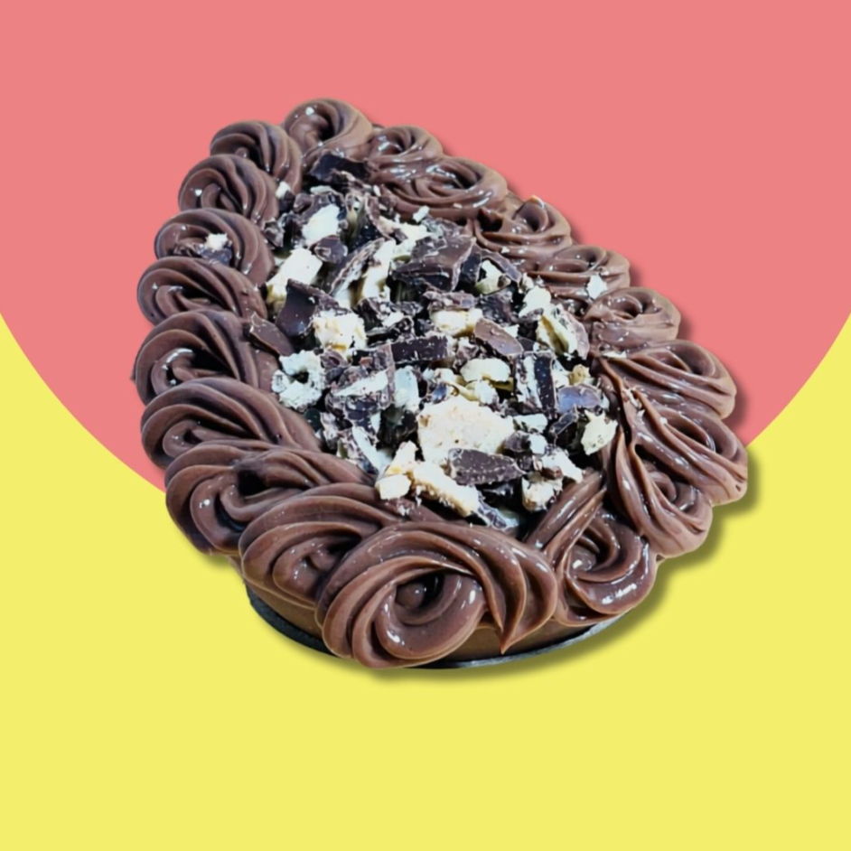 Massa com cacau de qualidade, chocolate meio amargo nobre e farinha premium. Casquinha perfeita, interior bem molhadinho. Cobertura com creme kinder, nutella original e pedaços de chocolate Kinder Bueno White. Aprox 160g.