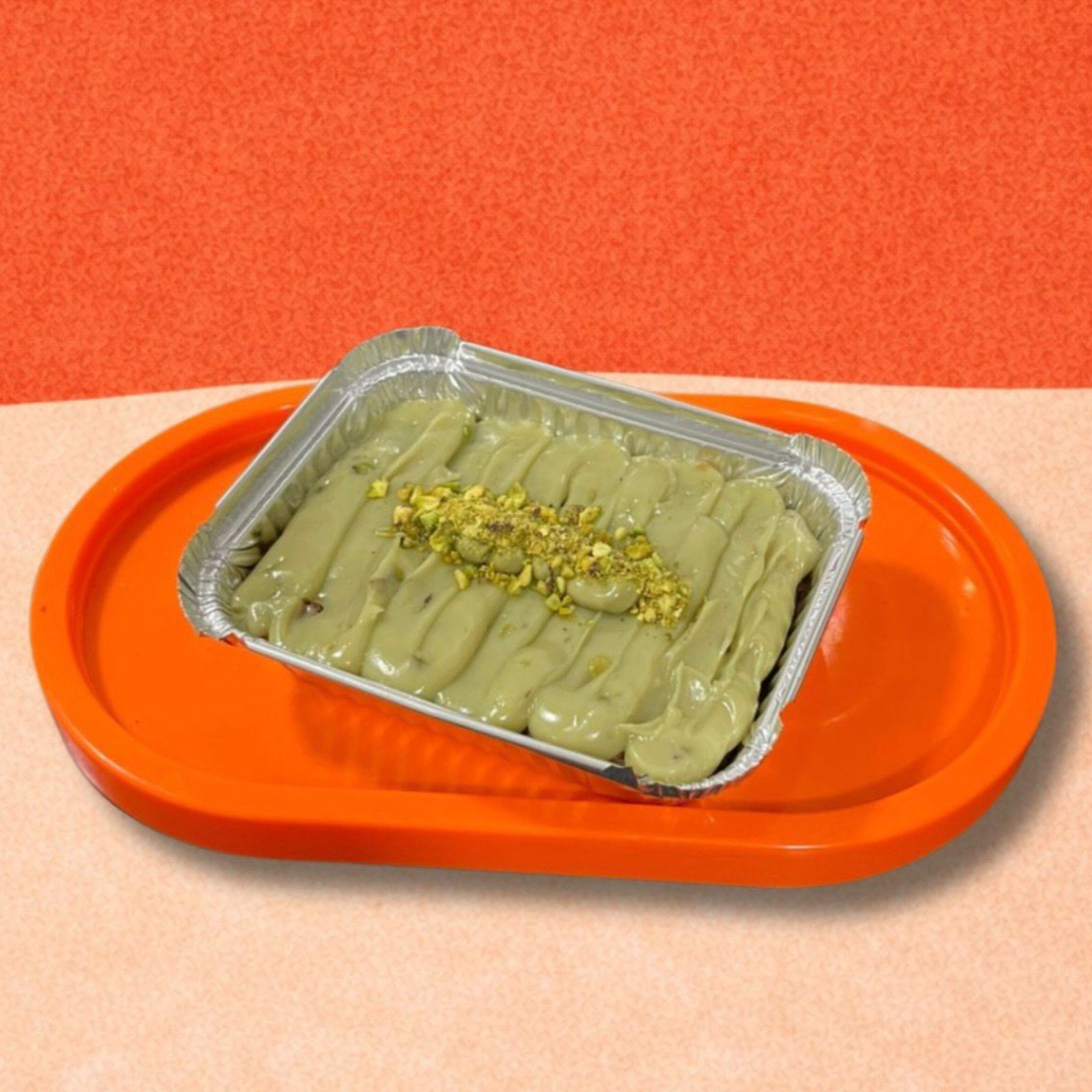Massa com cacau de qualidade, chocolate meio amargo nobre e farinha premium. Casquinha perfeita, interior bem molhadinho. Cobertura com creme de pistache iraniano + pistache triturado. Aprox 160g.