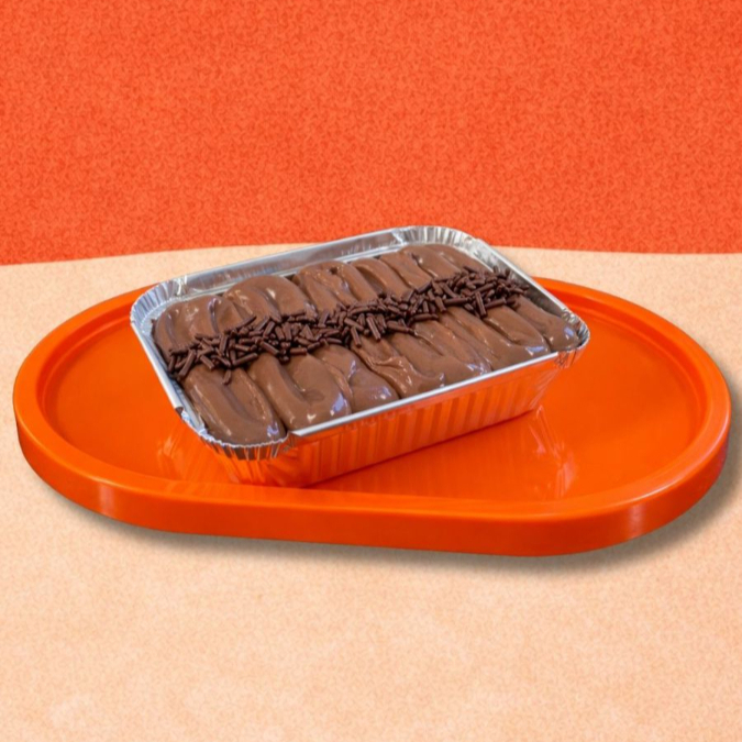 Massa com cacau de qualidade, chocolate meio amargo nobre e farinha premium. Casquinha perfeita, interior bem molhadinho. Cobertura de brigadeiro de leite ninho. Aprox 160g.