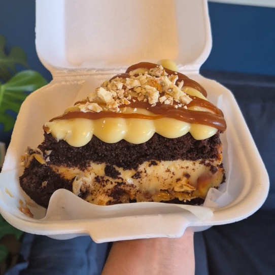 Fatia De Brigadeiro Branco Com Caramelo Salgado E Sucrilhos.