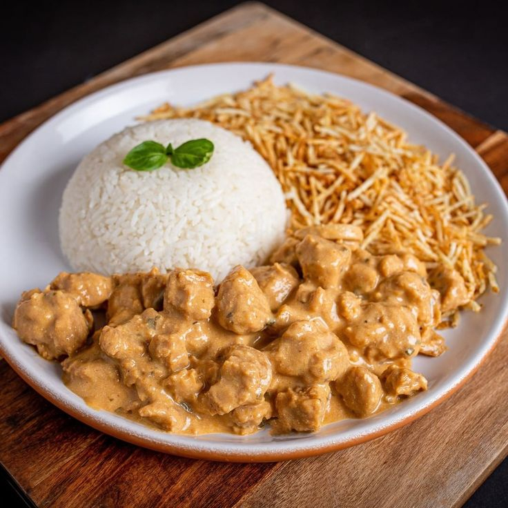 Experimente o sabor irresistível do nosso strogonoff de frango! Deliciosos pedaços de frango macio em um molho cremoso e saboroso. Acompanha arroz branco e batata palha.