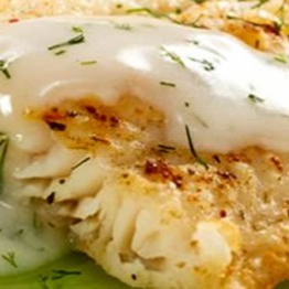 Arroz, Feijão, Peixe ao Molho de Nata,Refogado e Fritas,