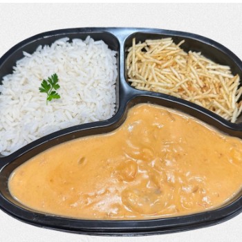 -ESTROGONOFE DE CAMARÃO \ - ARROZ BRANCO - BATATA PALHA *ACOMPANHA: SALADA E MOLHO DE ALHO