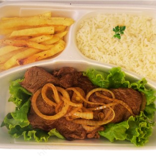 Contra Filé Acebolado + Salada (marmitex Executiva)
