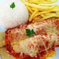 - PARMEGIANA DE FRANGO ( Filé de Frango empanado e frito, sobre molho de tomate, coberto com mussarela e presunto e fina camada de molho. - BATATA FRITA - MOLHO DE ALHO - ARROZ BRANCO **ACOMPANHA: SALADA E MOLHO DE ALHO
