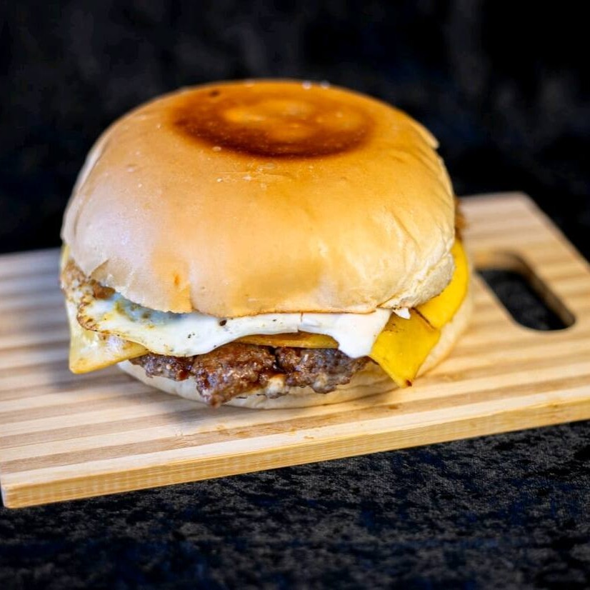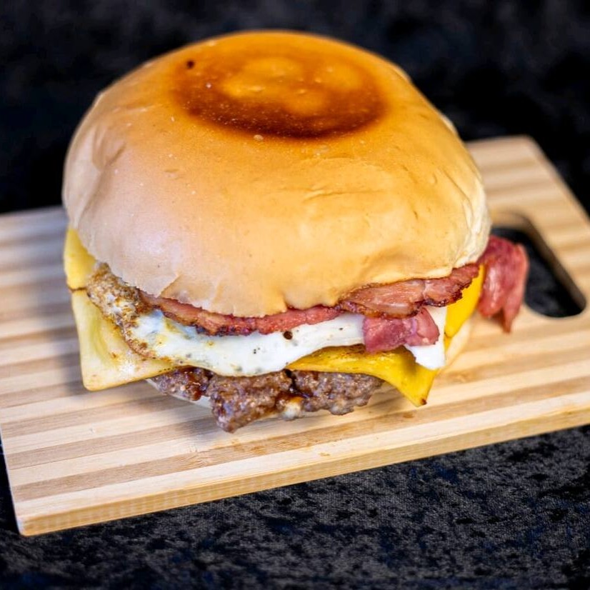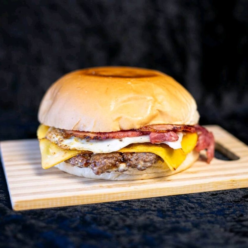 Pão, hambúrguer artesanal, ovo, queijo e molho especial.