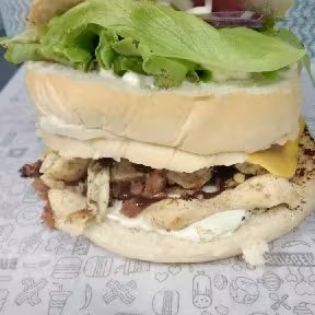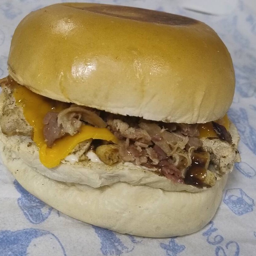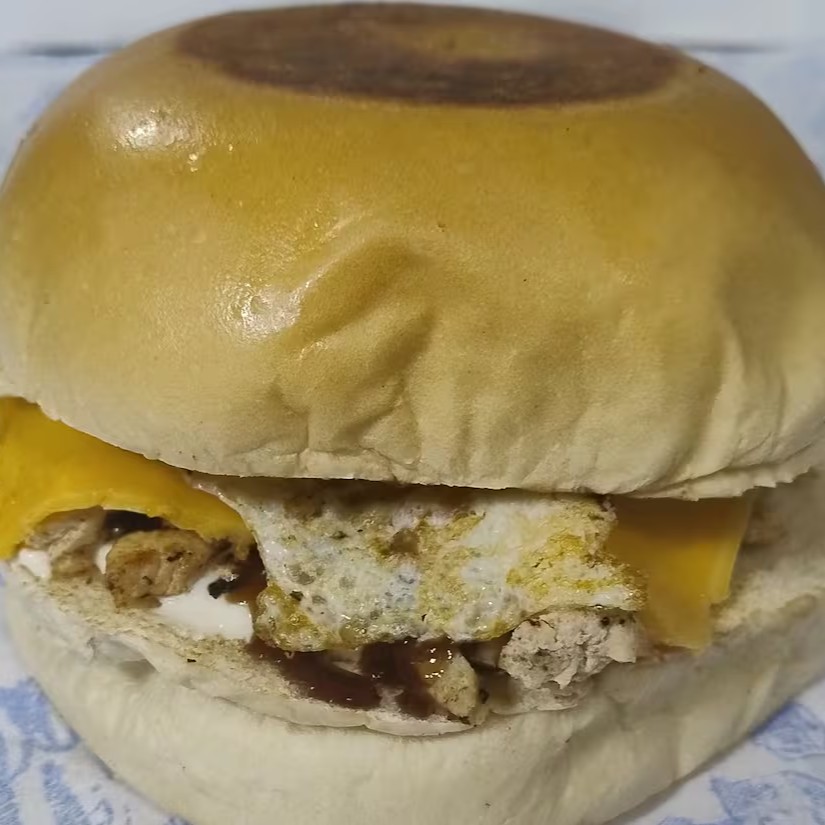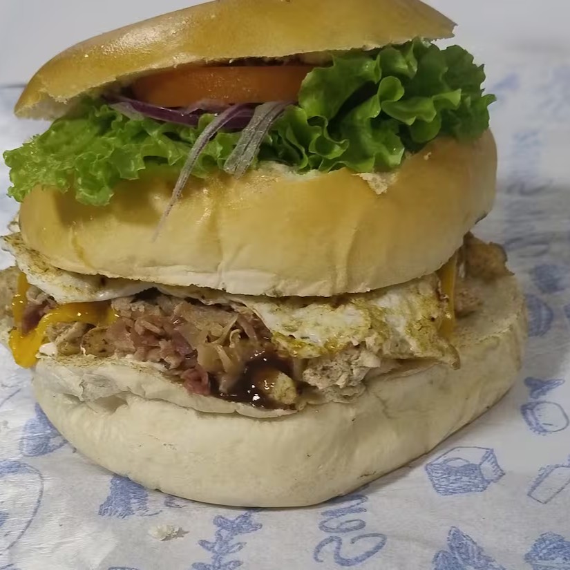 Pão, filé de frango, ovo, bacon Queijo, molho especial