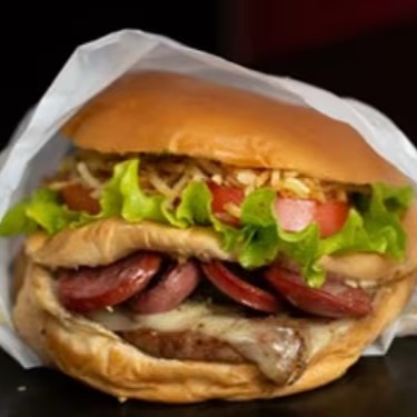 Pão, hambúrguer artesanal, calabresa, queijo, salada e molho especial.