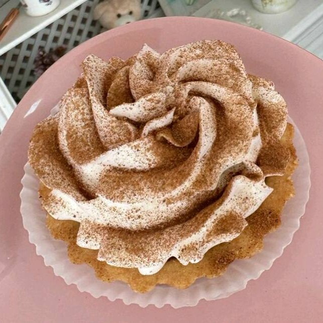 Deliciosa torta crocante com recheio de doce de leite suave e banana coberto com chantilly e canela