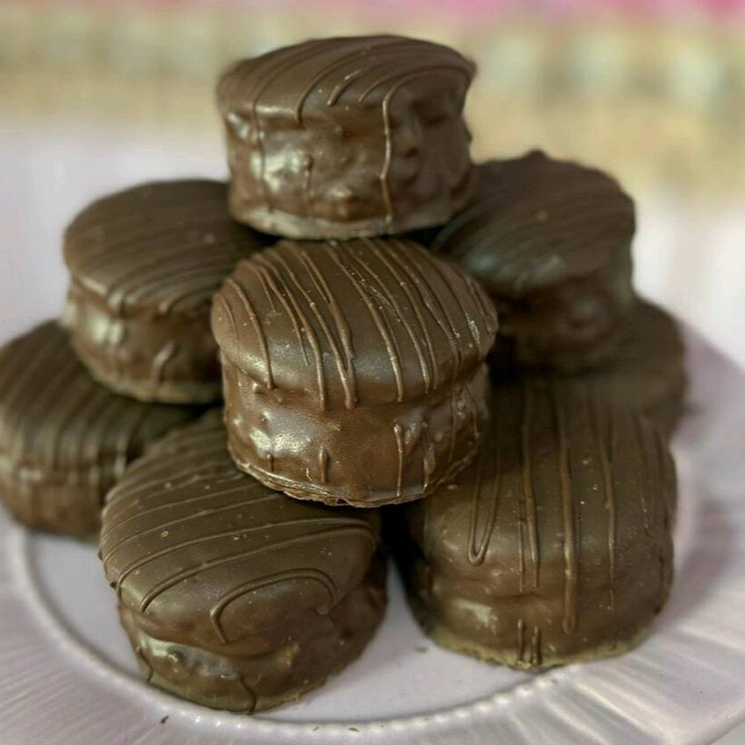 Massa pão de mel com recheio de doce de leite, banhado com uma cobertura de chocolate ao leite