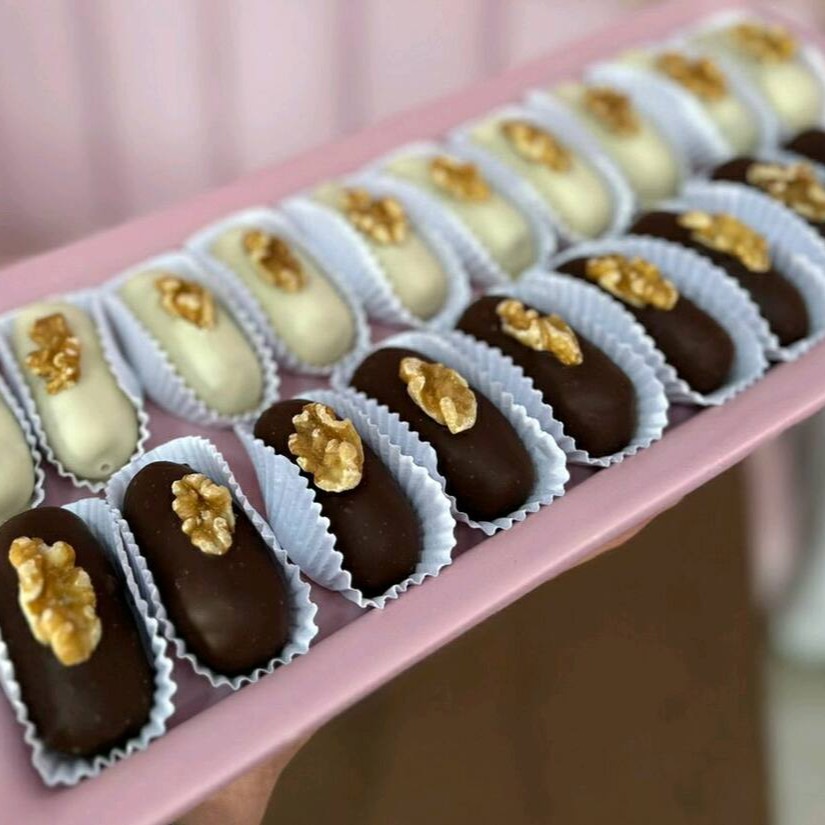 Nosso clássico camafeu é feito com um doce de nozes cremoso e suave, coberto com uma camada fina de chocolate preto e finalizado com meia noz. Ideal para acompanhar um café, para presentear ou adoçar seu Dia.
