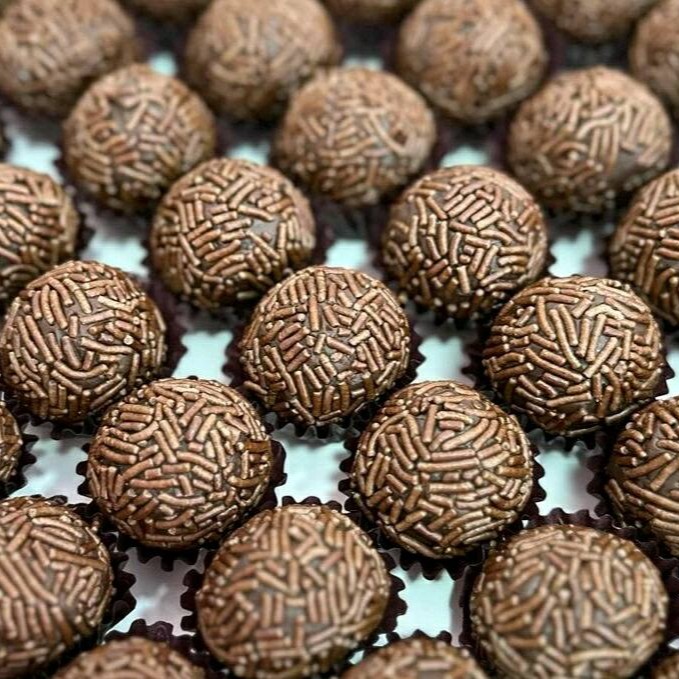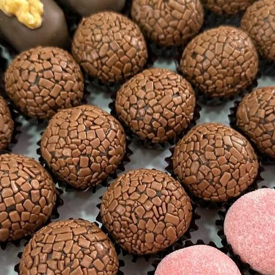 Clássico e irresistível brigadeiro de chocolate 50% cacau e granulado tradicional
