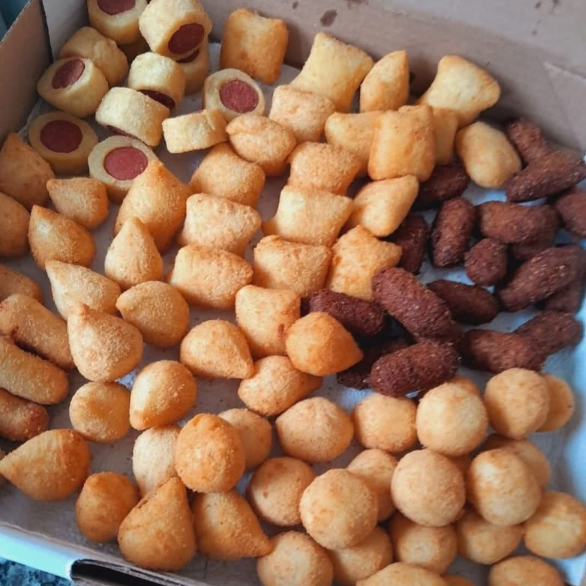 Coxinha Risolis Bolinha Enrolado salsicha Calabresa