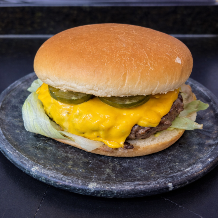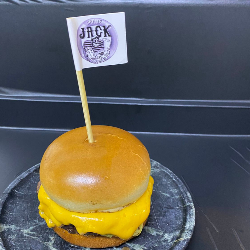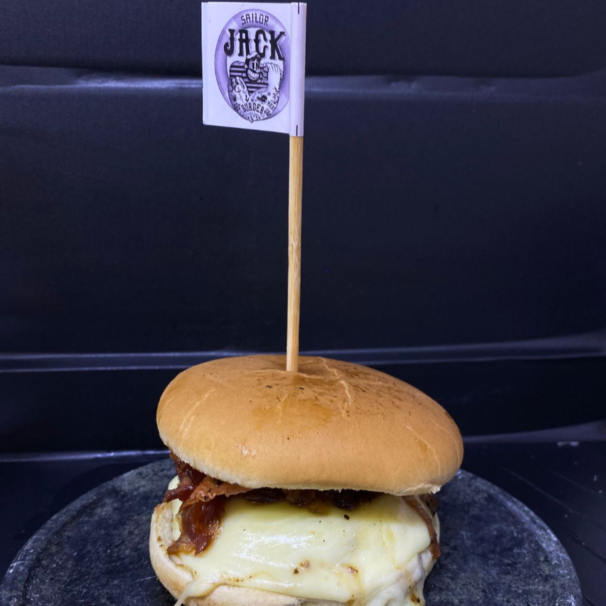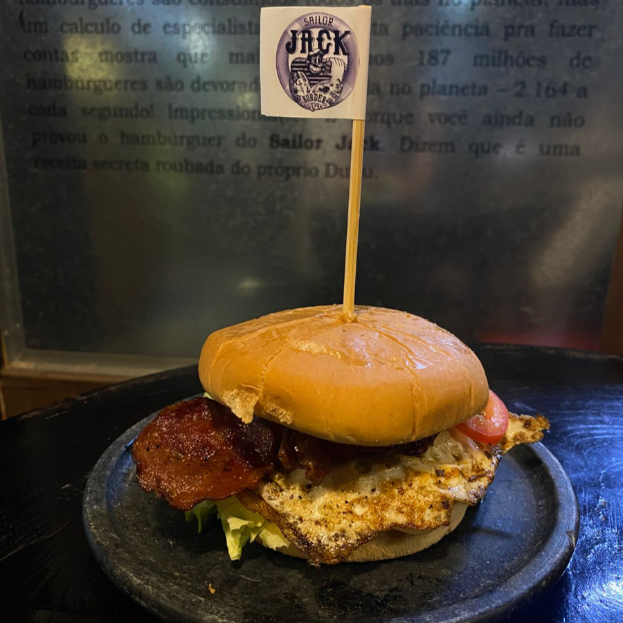 Hambúrguer artesanal de 150g, pão Jack tradicional, queijo prato, picles de pepino, alface americana e maionese Sailor. Não acompanha Batata.