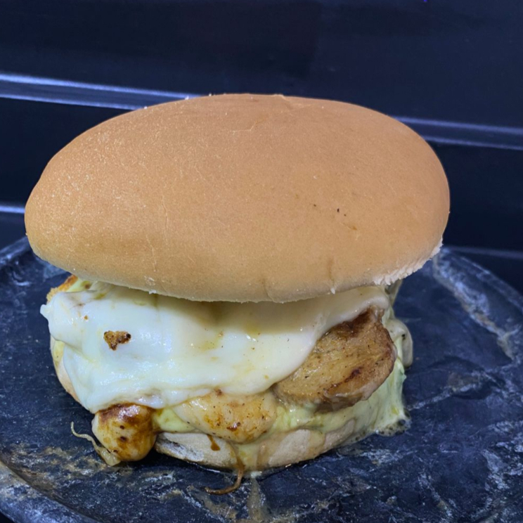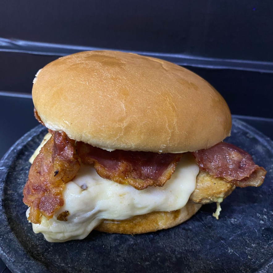 Pão de brioche, frango crispy de 150 gr, queijo prato, saladinha da casa e maionese sailor.