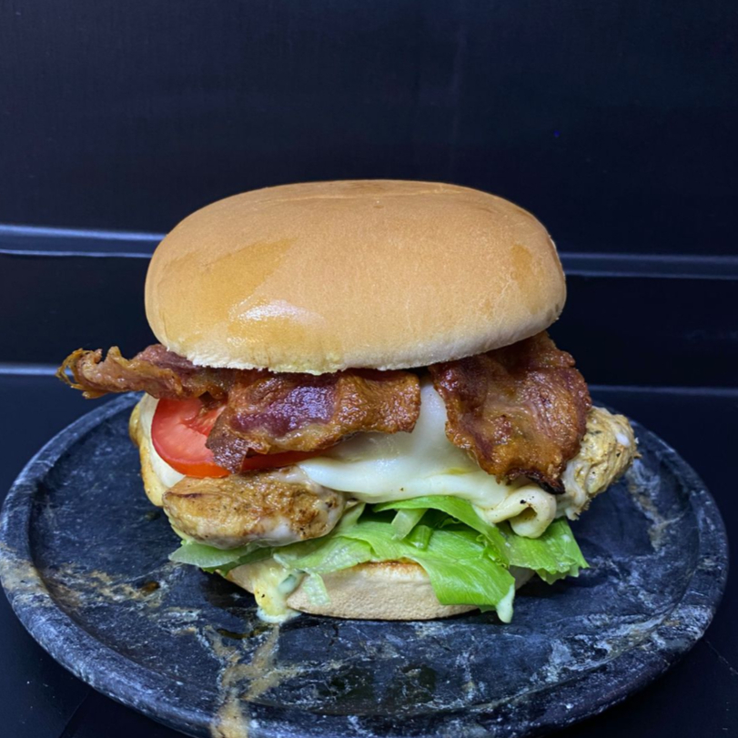 Pão tradicional, 160 gr de frango em tirinhas, mussarela, bacon, salada, ovo frito e maionese Sailor.