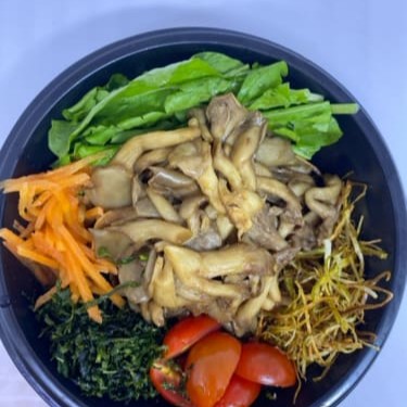 ('arroz, shimeji, rucula, tomate cereja, cheese, sunomono, couve crispy')