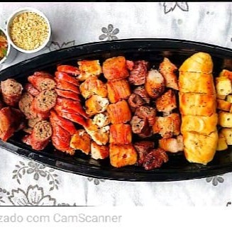 Desfrute da nossa 'Barca de Espetos', um combo espetacular que traz uma seleção primorosa de espetos: 1 espeto bovino suculento, 1 espeto misto cheio de sabor, 1 espeto de kafta irresistível, 1 espeto de panceta crocante, 1 espeto de linguiça toscana ,1 espeto de frango macio, 1 espeto medalhão de mandioca, inclui também, 1 saboroso espeto de queijo coalho e, para finalizar, 1 pão de alho douradinho e irresistível. Uma verdadeira festa de sabores para o seu paladar!