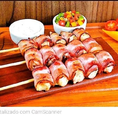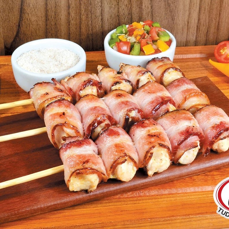 O 'Medalhão de Frango' é um espeto de aves primorosamente preparado. Cada pedaço de frango sem osso é meticulosamente temperado, envolto em uma camada de bacon suculento e assado no exato momento do seu pedido. O resultado é um prato irresistível, com a mistura perfeita de texturas e sabores, onde o frango macio se une a crocância do bacon, proporcionando uma experiência gastronômica única e deliciosa. Um deleite para os amantes de aves e bacon!