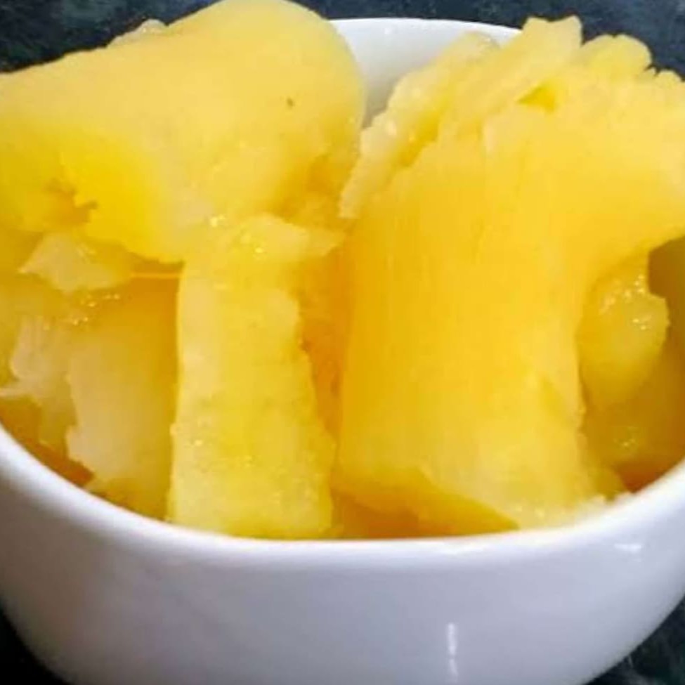 Mandioca cozida, um excelente acompanhamento. Enviamos em pote biodegradável de 250 ml com peso aproximado de 188g a 222g.