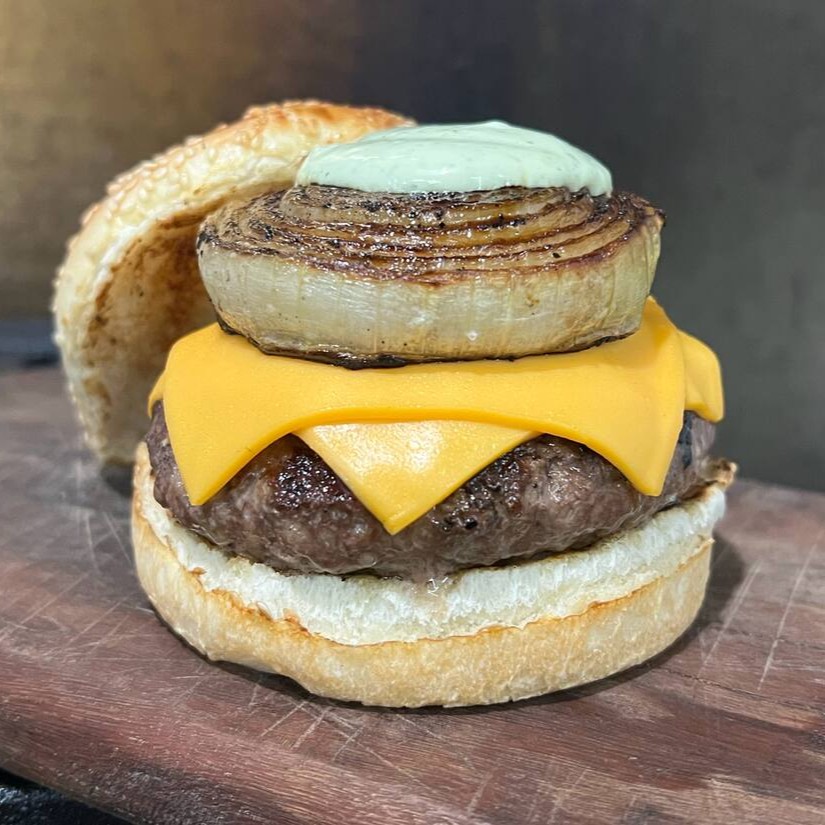 Rodela de cebola caramelizada na açúcar com canela na brasa ! Hambúrguer 160 g grelhado na parrilla ! Cheddar, maionese verde no pão de brioche ! Sabor marcante que vc jamais vai esquecer, válido até o fim de novembro