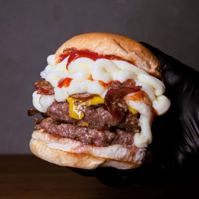 3 hamburguer de 160 g cheddar triplo, bacon triplo, maionese da casa no pao de brioche esse é para quem ta com muita fomeeee !