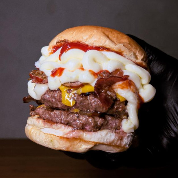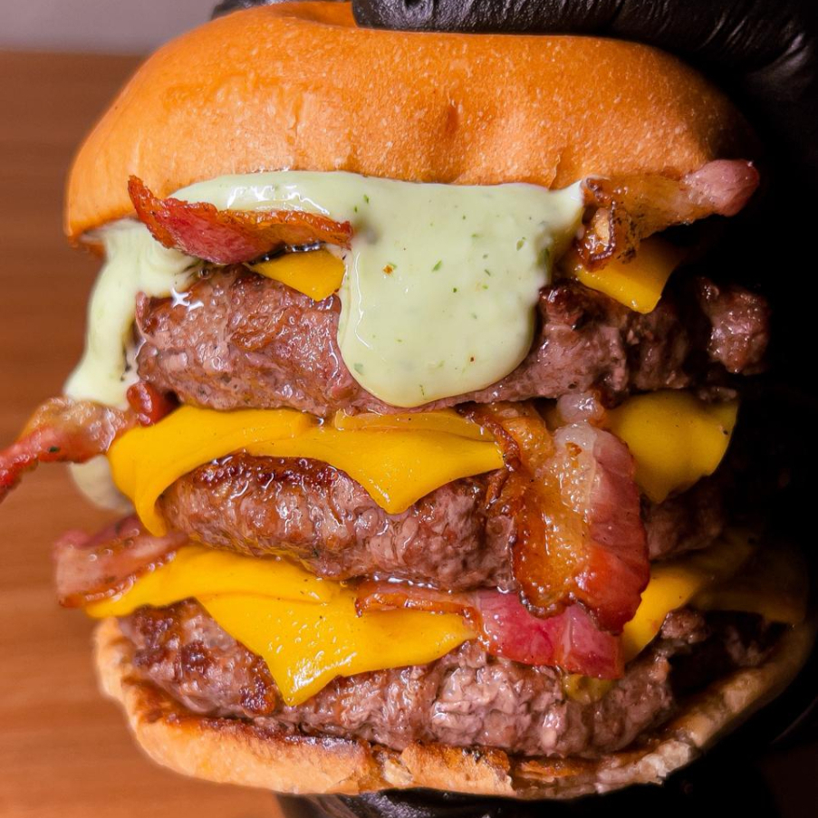 3 hamburguer de 160 g cheddar triplo, bacon triplo, maionese da casa no pao de brioche esse é para quem ta com muita fomeeee !