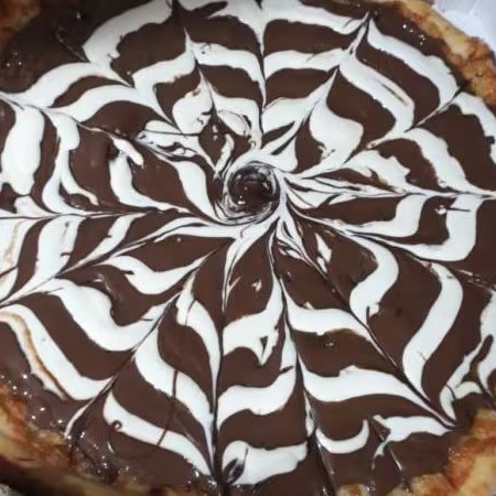 Creme de leite cremoso, chocolate ao leite e chocolate branco.