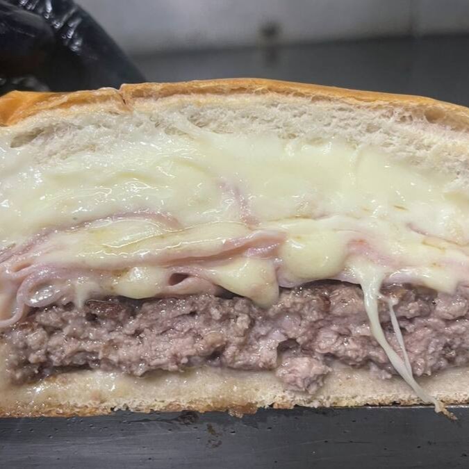 Pão, Maionese, Queijo, presunto, Catupiry Original e hambúrguer