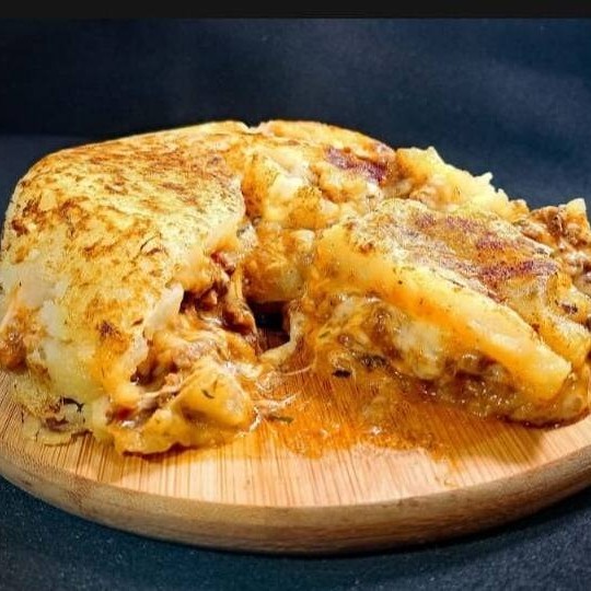 Carne ao molho,mussarela.Tradicional, feito com amor e qualidade!
