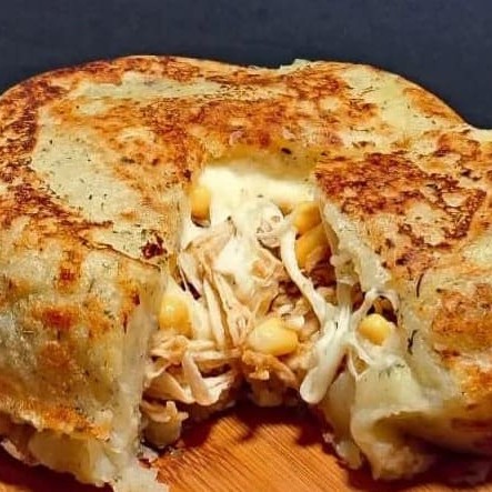 Batata Ralada temperadinha, Frango desfiado delicioso , Milho , requijão e Mussarela