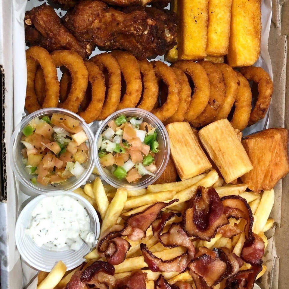 Tato’s master montado com nosso delicioso frango crocante, Cubos de polenta, delicioso aipim frito, Onion rings empanado, fritas c/bacon, vinagrete, nosso delicioso arroz branco e nosso suculento molho de alho. Servindo de 3 a 4 pessoas