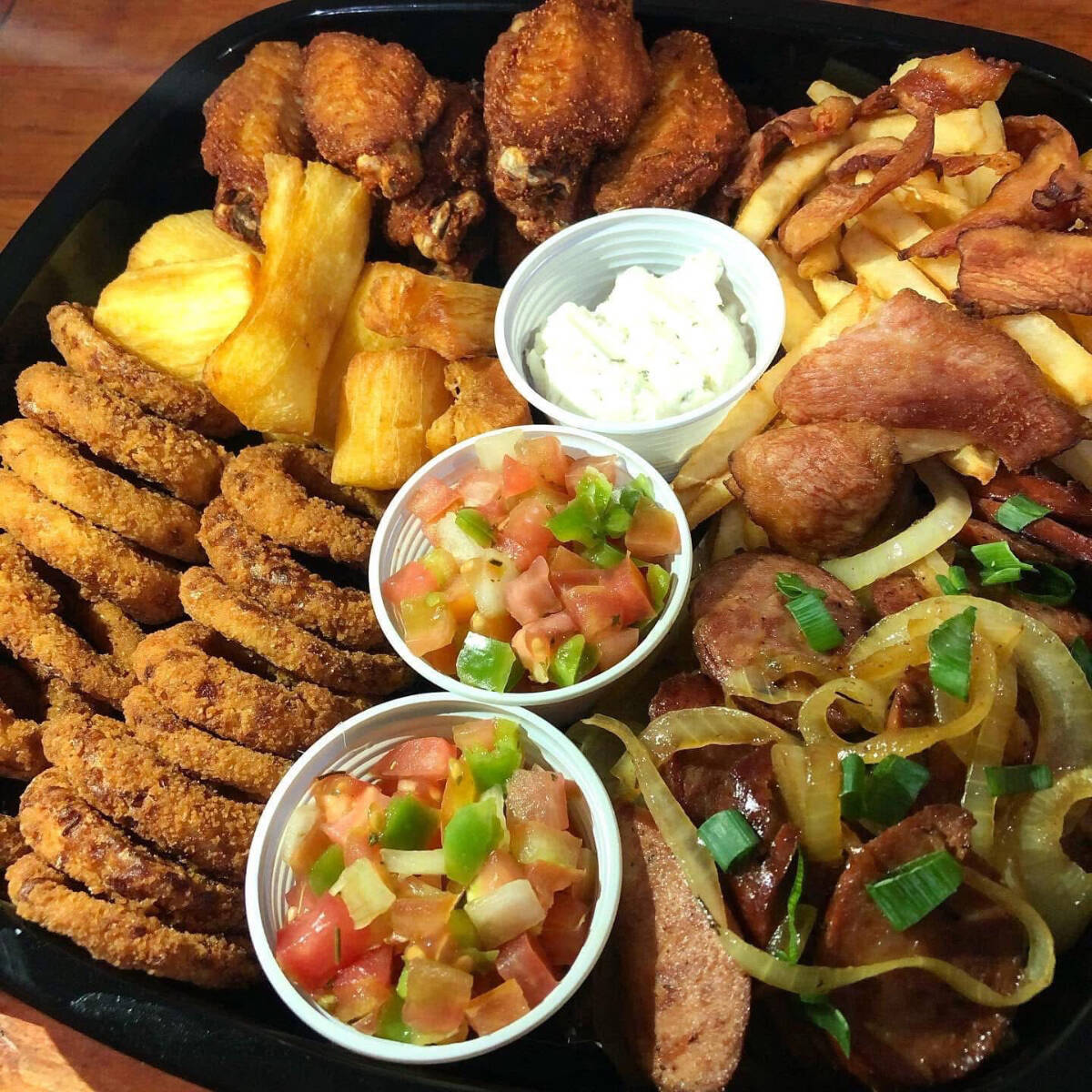 Aquele combo de petiscos irresistível, acompanhado de nosso suculento molho de alho. Servindo ate 3 pessoas
