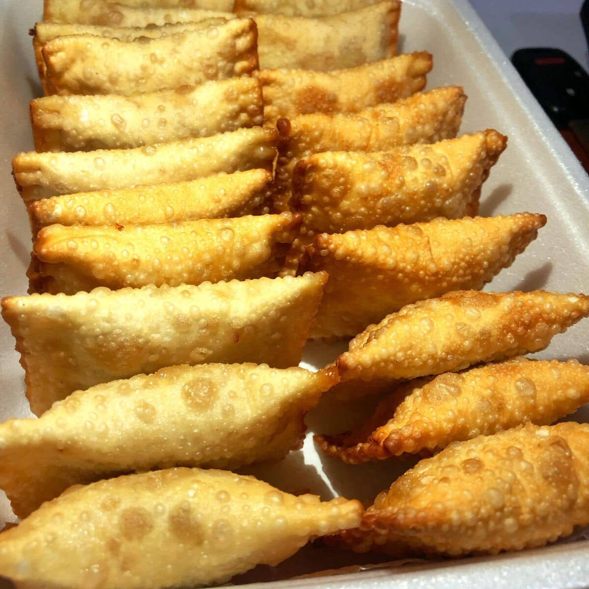 Porção de mini pastéis recheado com queijo mussarela e catupiry. 18 unidades