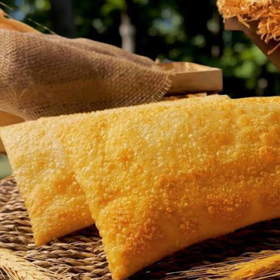 Pastel de calabresa ralada finalizado com catupiry.