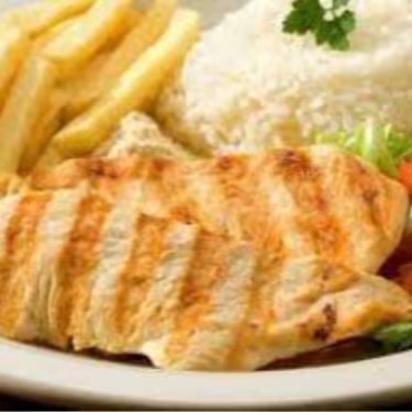 Arroz, batata frita e filè de frango á parmegiana