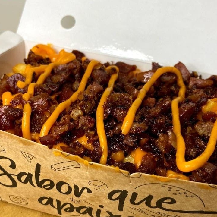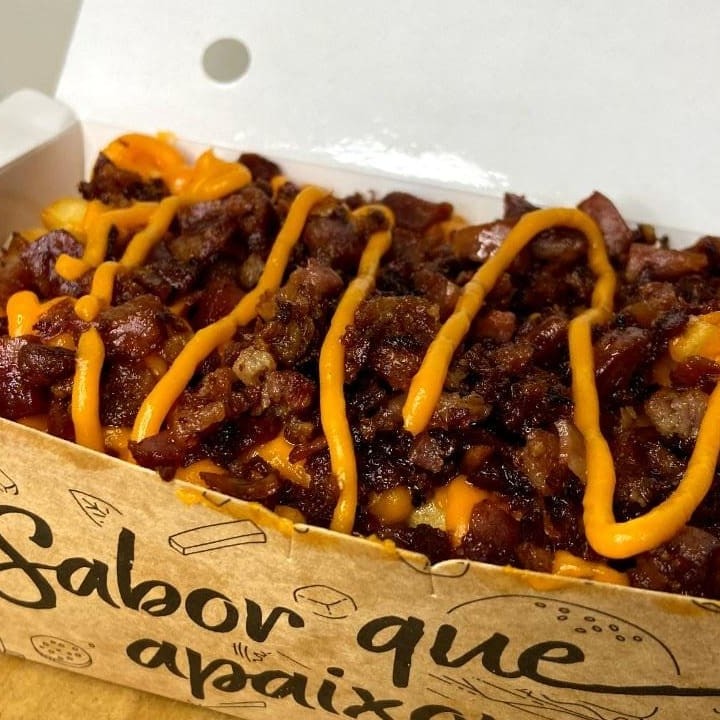 Pão brioche, blend da casa 120g prensado na chapa, queijo prato, vinagrete, pernil desfiado, molho barbecue e maionese
