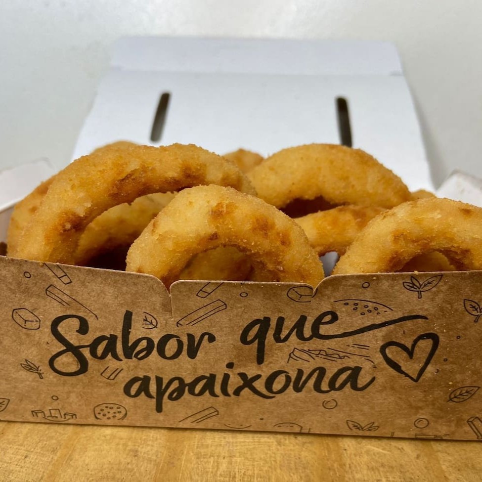 Hamburger 120g, mussarela, bacon, onion rings, molho barbecue e maionese