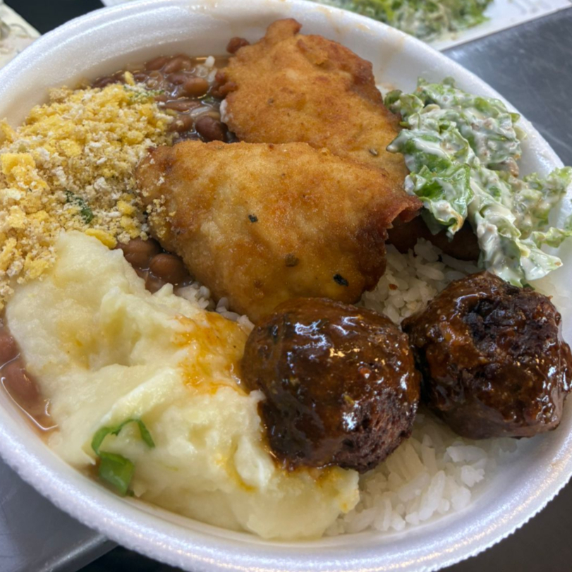 Marmitex Completa e Bem Servida. O básico essencial, feito com carinho. Contém: Arroz, feijão, macarrão, calabresa acebolada, file de frango grelhado, farofa.