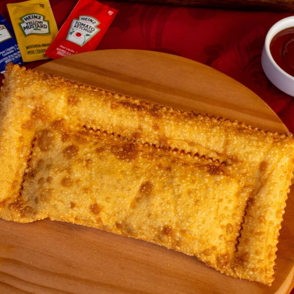 Um pastel crocante recheado com filé de carne bovina suculento, mussarela derretida, Catupiry cremoso, tomate fresco e cebola, finalizado com uma borda recheada de Catupiry, trazendo cremosidade a cada mordida.
