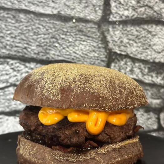 Pão de Brioche, Hamburguer 100gr, Cheddar, Bacon e Molho Barbecue.
