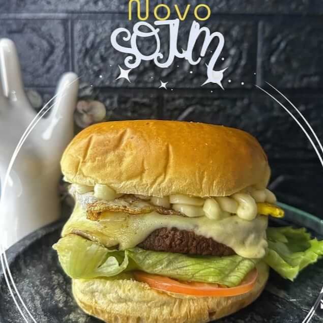 Pão de brioche, Hamburguer de soja 120gr, Alafece, Tomate, Queijo Mussarela,, Catupiry e Ovo.