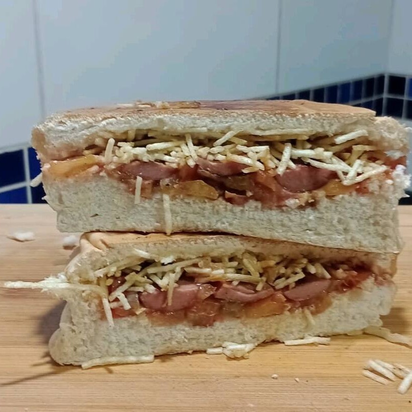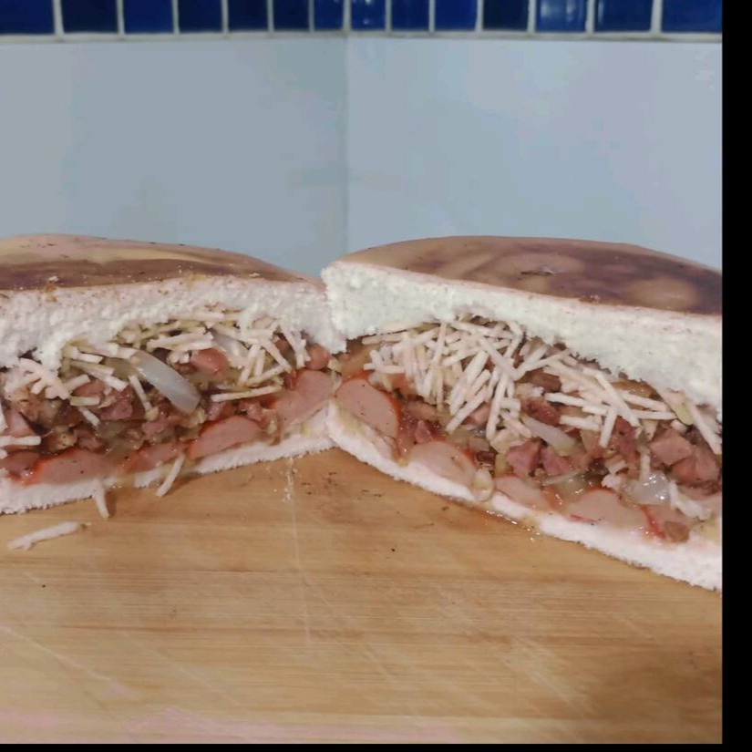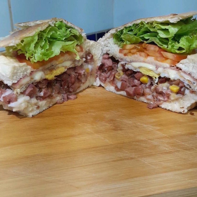 Experimente o máximo de sabor com calabresa, queijo, ovo, Catupiry, bacon, molho e presunto. Uma verdadeira explosão de sabores em um só lanche. Acompanha molho de alho verde