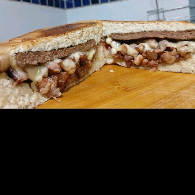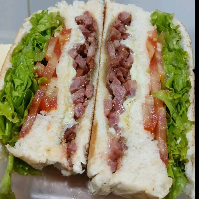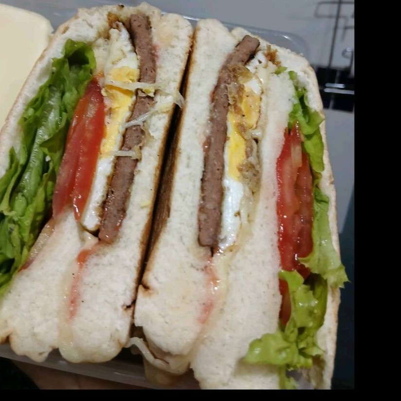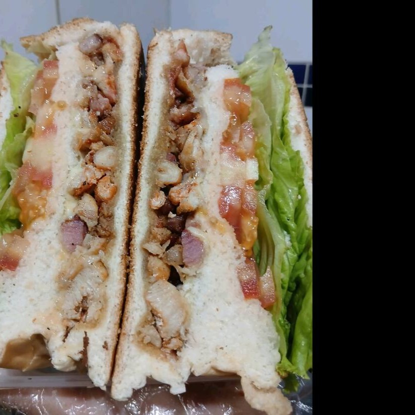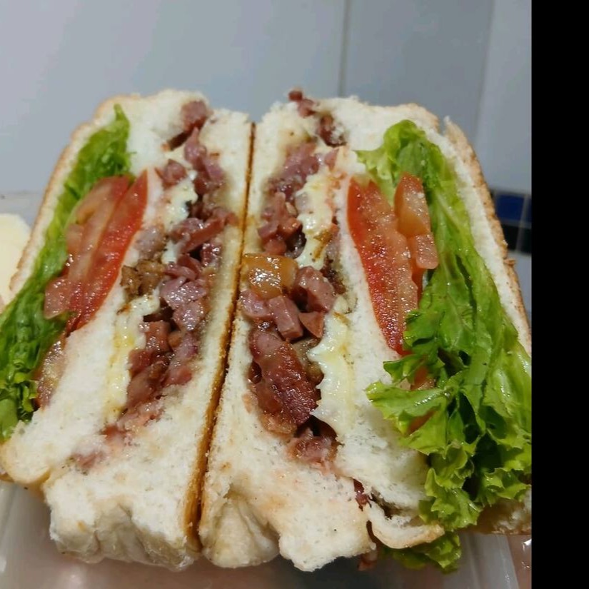 Saboreie o misto quente com ovo, bacon e salada. Uma explosão de sabores com presunto, queijo, ovo, bacon e salada fresca. Acompanha molho de alho verde