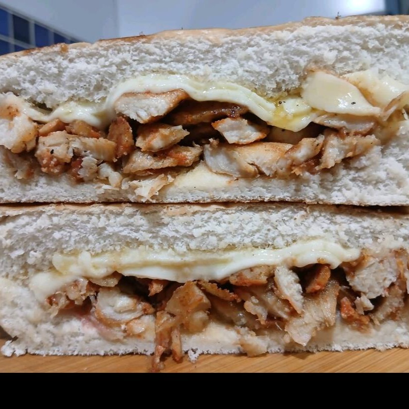 Sanduíche de frango com queijo, salada fresca, maionese e ketchup, uma combinação leve e saborosa para qualquer momento do Dia. Acompanha molho de alho verde