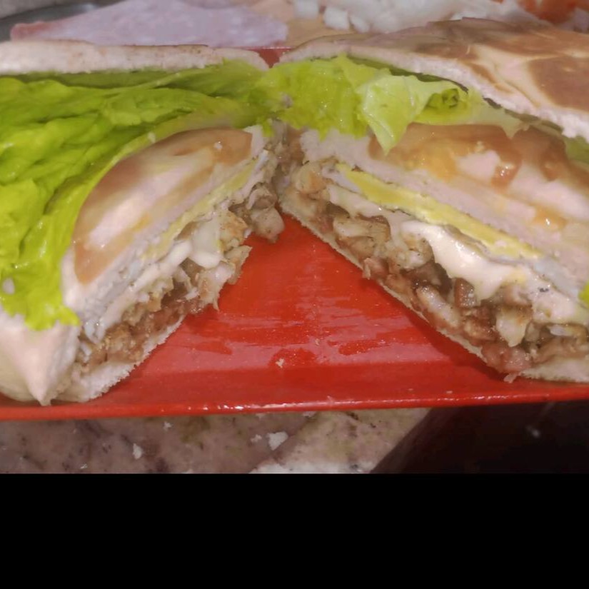 Sanduíche de frango com queijo, ovo, bacon, maionese e ketchup, uma delícia irresistível para os amantes de sabores intensos. Acompanha molho de alho verde