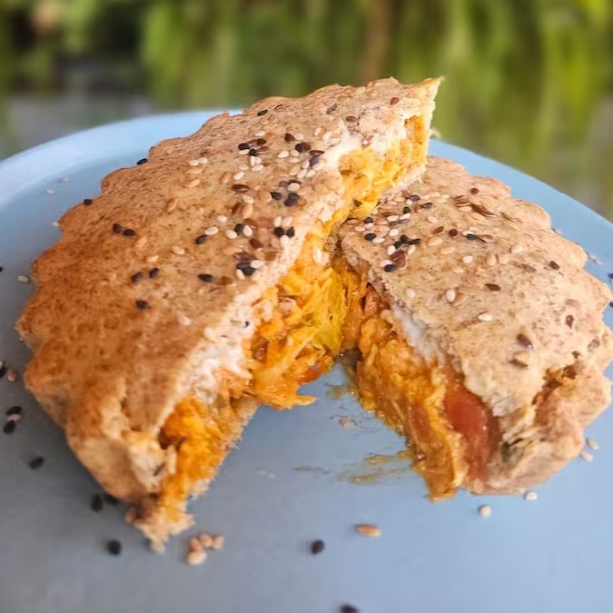 Cubos de frango grelhado, muçarela, parmesão, cream cheese, gorgonzola, cenoura e mix de folhas. Rico em proteína, cálcio e antioxidantes que equilibram sabor e nutrição.