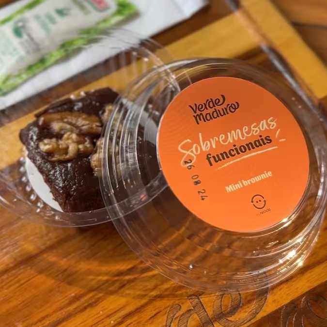 Brownie feito com farinha de arroz, chocolate 50% e adoçado com xilitol. Opção funcional e equilibrada para matar a vontade de doce sem culpa. Peça o seu!