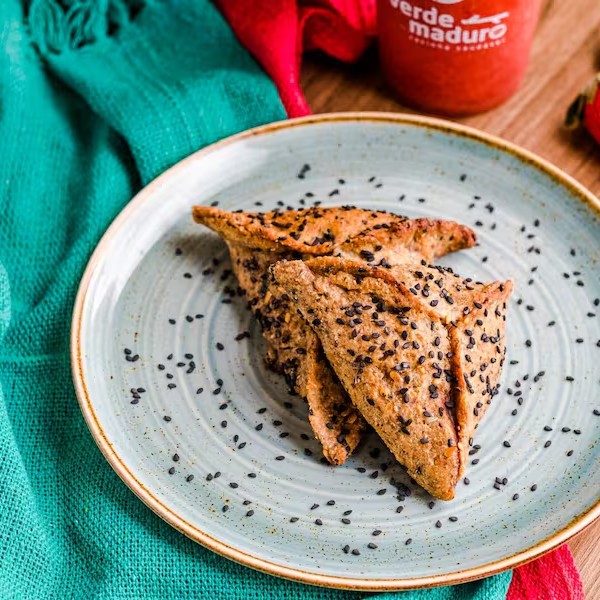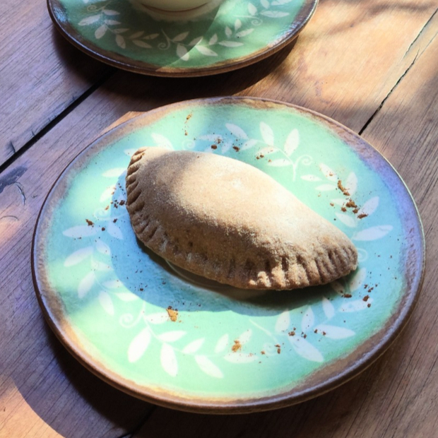 Massa com canela e cravo, recheio macio e docinho de feijão, canela e uma pitada de cravo.