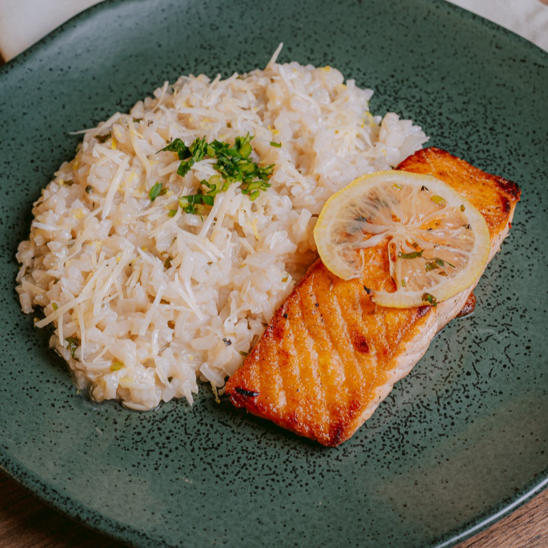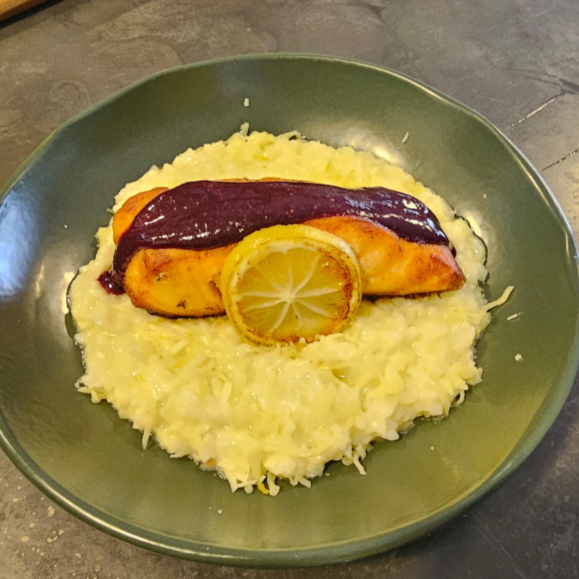 Risoto De Limao Siciliano Com Posta De Salmao E Calda De Frutas Vermelhas